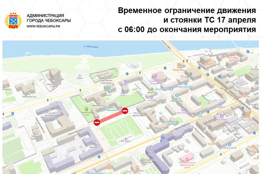 Просим чебоксарцев с пониманием отнестись к временному ограничению и заранее планировать перемещение и стоянку на существующей улично-дорожной сети г.Чебоксары.