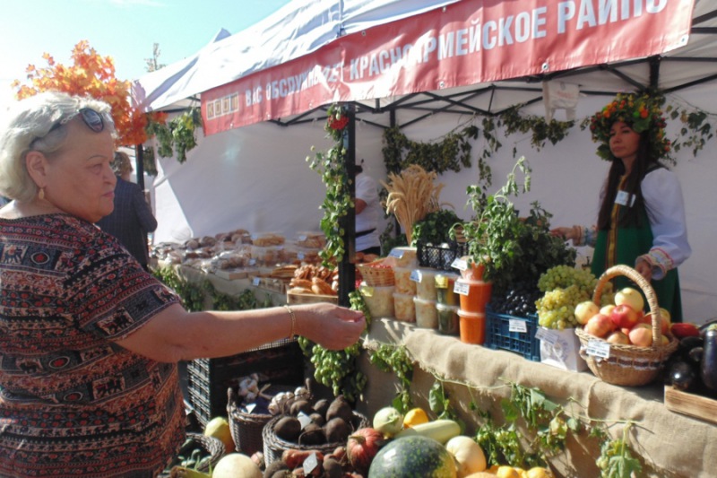 Покупателям предлагались: картофель, лук репчатый, чеснок, морковь, огурцы, помидоры, капуста, свекла, перец, тыква, кабачки, зелень, рыба, мясная и молочная продукция, крупы, мука, мед, ягоды (клубника, брусника и клюква), хлебобулочные изделия, кондитерская продукция, орехи, чаи, напитки, саженцы и многое другое.