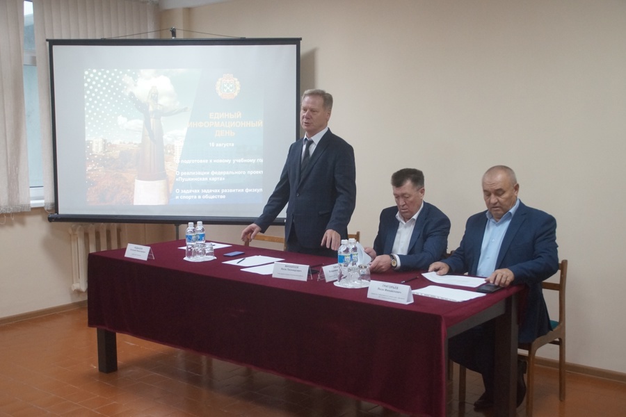 Основными темами Единого информационного дня сегодня стали подготовка образовательных учреждений к новом учебному году, реализация федерального проекта «Пушкинская карта», а также содержание спортивных комплексов в надлежащем состоянии и задачи по развитию физической культуры и спорта в обществе.