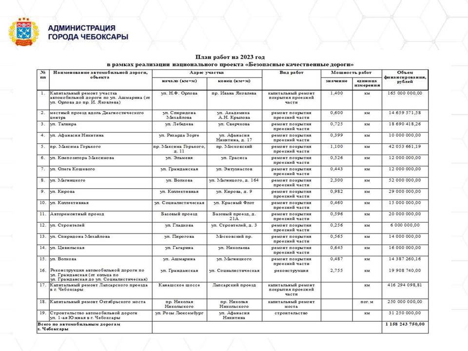 Доля нормативного состояния автомобильных дорог в границе Чебоксарской агломерации (включающие в себя дороги федерального, регионального и местного значения) на 01.01.2023 составляет 77,07%. К 2024 в городе Чебоксары этот показатель планируется увеличить до 80,85%.