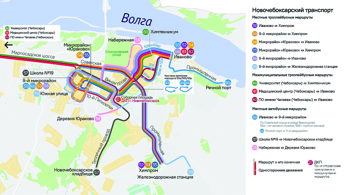 На муниципальных маршрутах Новочебоксарска к обозначенному времени завершат свое действие выданные перевозчикам свидетельства, поэтому муниципальную маршрутную сеть города планируется изменить полностью. В частности, маршрут № 50 будет охватывать ул. Советскую и Винокурова в трех вариантах: 50а — по часовой стрелке, 50б — против, 50р — до речного порта, он заменит нынешний существующий маршрут № 11.
