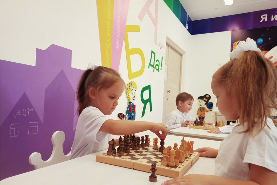 При поддержке администрации города Чебоксары в дошкольных учреждениях столицы созданы все условия для всестороннего развития детей, выявления талантов, поддержки детской инициативы и способностей. В целях популяризации интеллектуальных видов спорта у подрастающего поколения, в рамках реализации дополнительного образования в детских садах города обучают игре в шахматы и шашки , оформлены инновационно - развивающие пространства: шахматные уголки, специальные стационарные и передвижные столы .