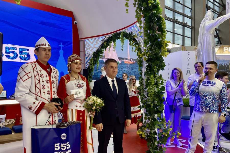 На стенде города Чебоксары честовали молодую семью Андреевых