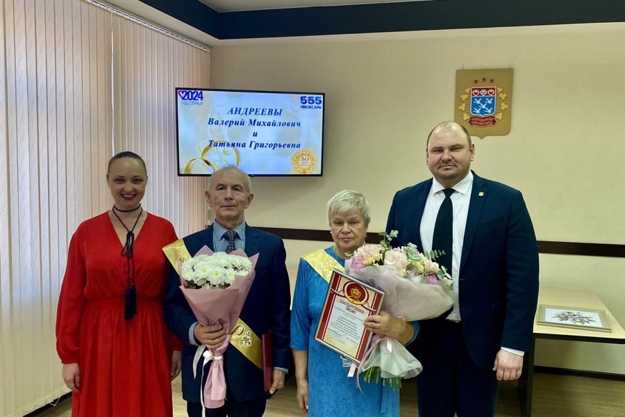 Чествование золотой семьи состоялось 6 марта в управе по Ленинскому району администрации г.Чебоксары. К поздравлениям присоединились глава города Чебоксары Денис Спирин , депутат Государственного Совета Чувашской Республики, генеральный директор ООО «Производственная компания «Промтрактор» Александр Титов , заместитель председателя «Союза женщин Чувашии» Анастасия Спирина , руководитель Управы Ленинского района города Чебоксары Максим Андреев .