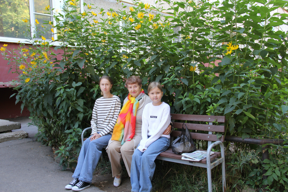 А эстафету возле подъезда подхватила семья Семеновых. Мама Татьяна Анатольевна — главный цветовод. Есть у нее и верные помощницы — дочери Дарья и Вероника (на фото № 1 слева и справа). Задача непростая, поскольку, например, воду для полива цветоводы берут из крана своей квартиры на верхнем этаже. Результат их работы можно увидеть на снимке (фото № 3).