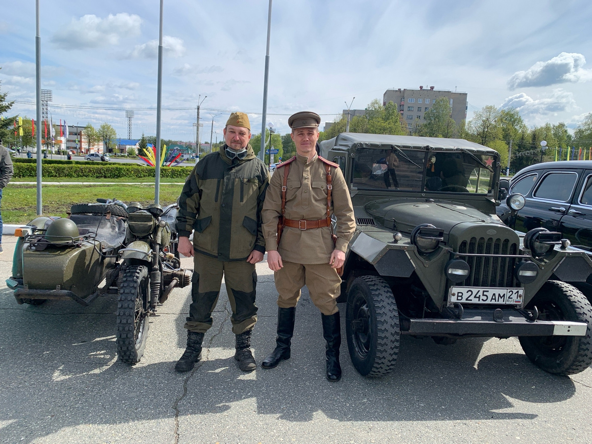 Автопробег, посвященный Дню Победы, стал хорошей традицией для Новочебоксарска. В этом году всё было примерно так, как и прежде: машины стартовали от Центра творчества детей и юношества им. А.И. Андрианова в 9.30. Проехали по улице Советской, затем на кольце при въезде в Новочебоксарск свернули на главную городскую магистраль — ул. Винокурова. Проехав по всей улице, колонна развернулась на кольце “Сокол” и оттуда отправилась прямиком на площадь Победы. Но в этот раз технику разрешили поставить непосредственно у ДК “Химик”, а не поодаль, рядом с проезжей частью, как было раньше.