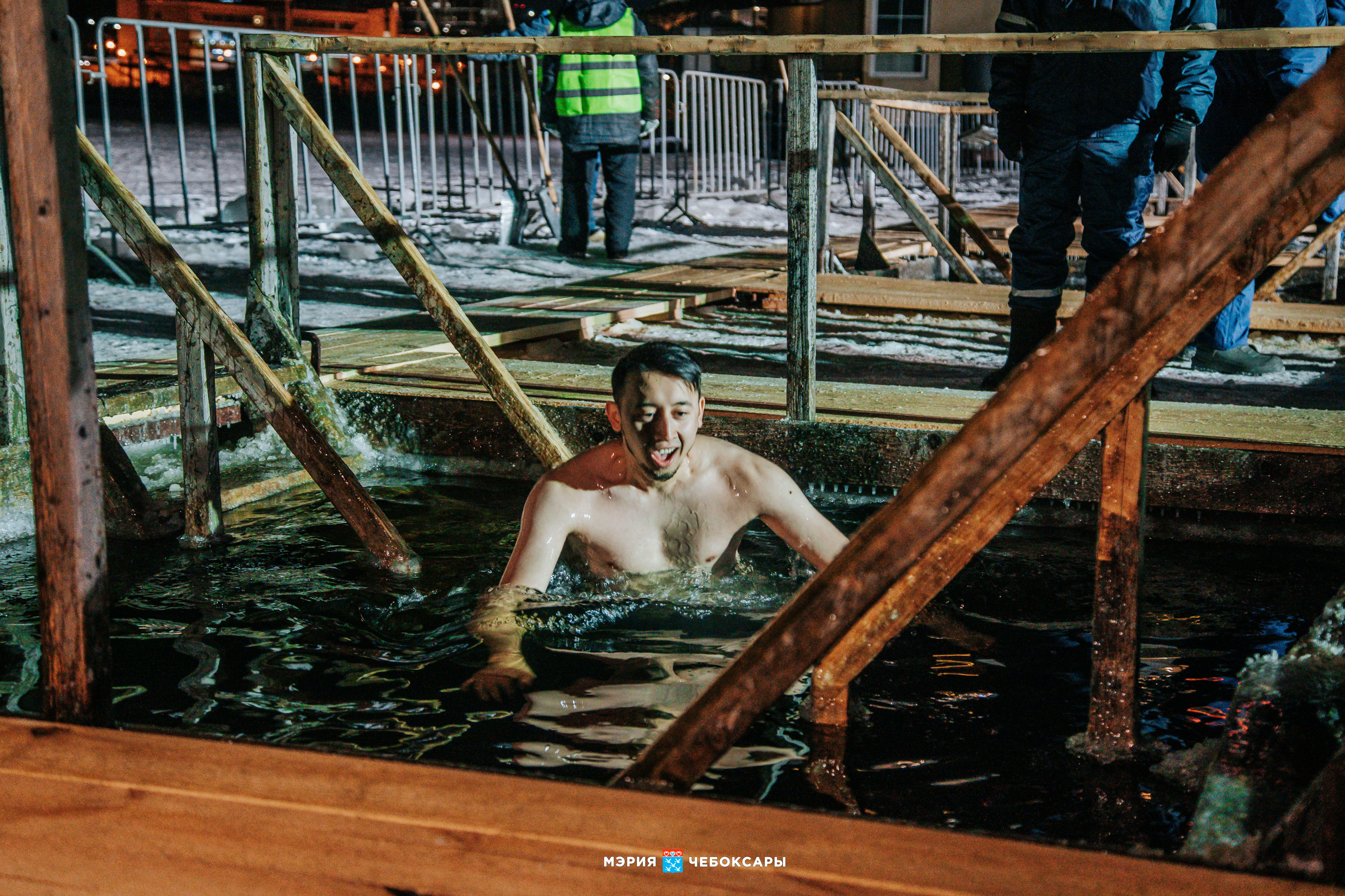 Всего на территории города было оборудовано 8 купелей. Местом притяжения чебоксарцев традиционно становятся и купели в районе Свято-Троицкого мужского монастыря. Здесь в крещенскую ночь в проруби окунулись 750 человек.