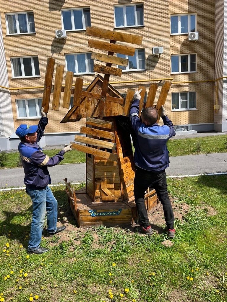 Ударно поработали и сотрудники управляющей компании "Волжский-3". Они организовали работы по озеленению придомовых территорий, посадку многолетних и однолетних цветов. Вновь жителей и гостей микрорайона радуют полюбившиеся арт-объекты: "Корабль", "Маяк", "Самолет", "Древо нации", "Мельница", "Звезды".