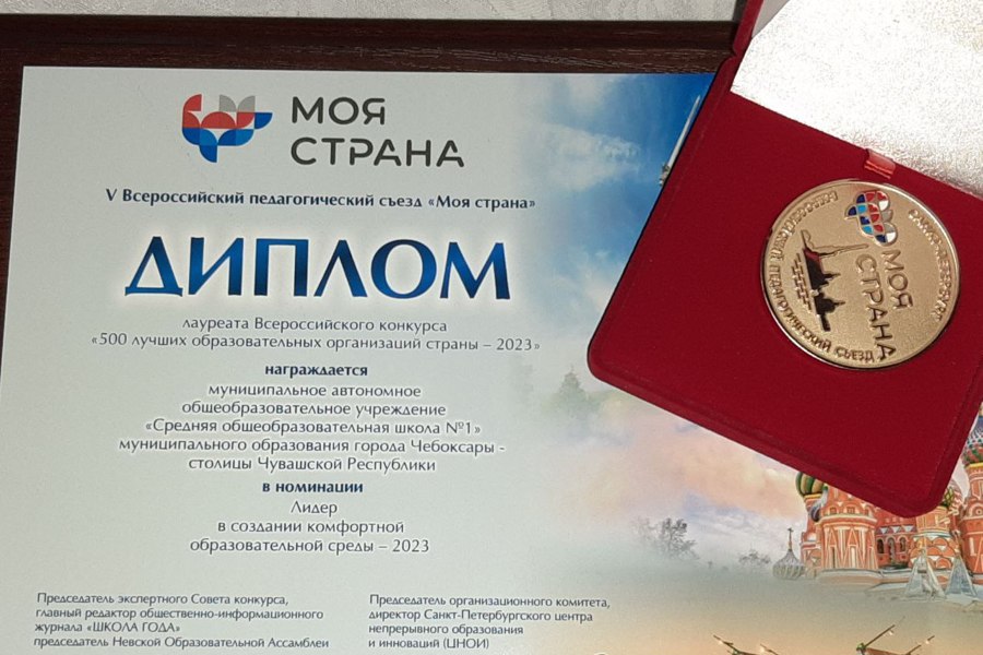 В рамках работы съезда прошла церемония награждения лауреатов Всероссийского конкурса «500 лучших образовательных организаций страны - 2023. Ежегодно в конкурсе участвуют лучшие российские образовательные организации, продемонстрировавшие передовой педагогический опыт и высокие показатели качества образования. МАОУ «СОШ № 1» города Чебоксары стала ПОБЕДИТЕЛЕМ в номинации «Лидер в создании комфортной образовательной среды - 2023. Школе была вручена медаль «500 лучших образовательных организаций страны - 2023» и диплом. Поздравляем директора Николаеву Татьяну Львовну и педагогический коллектив школы с заслуженной наградой и желаем дальнейших успехов!