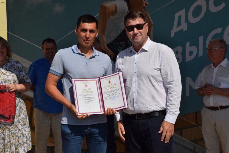 Сергей Ильин обратился к присутствующим с добрыми пожеланиями, затем вручил Почетные грамоты администрации Московского района г. Чебоксары. На сцену пригласили мастера по монтажу слаботочных сетей Андрея Галанкина, монтажника по монтажу стальных и железобетонных конструкций Дмитрия Кайнова, производителя работ Андрея Максимова, начальника отдела кадров Александру Скаченко, главного бухгалтера Михаила Кириллова.