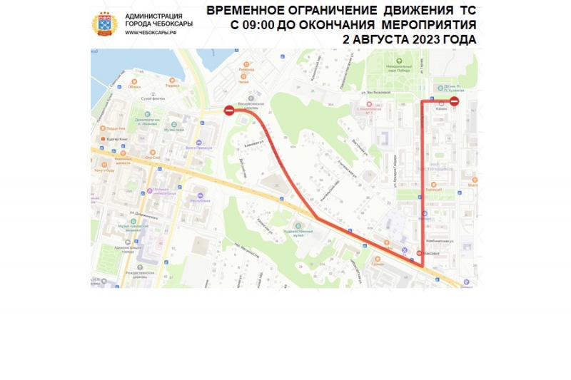 В Чебоксарах 2 августа ограничат движение транспортных средств