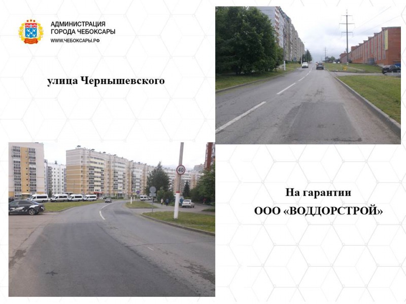 Доля чебоксарских дорог, находящихся в нормативном состоянии, составляет 76,4%. Весной т.г. по всем гарантийным участкам проведены объезды, в которых приняли участие представители подрядчика. По их итогам составлены акты проверки дорог, находящихся на гарантии. Они были направлены подрядным организациям для принятия меры по устранению в рамках гарантийных обязательств. К числу подрядчиков, выполнивших ремонт в полном объеме, относятся ООО "Автодор", ООО "Элитстрой", АО "Дорэкс" и АО "СЗ "ТУС".