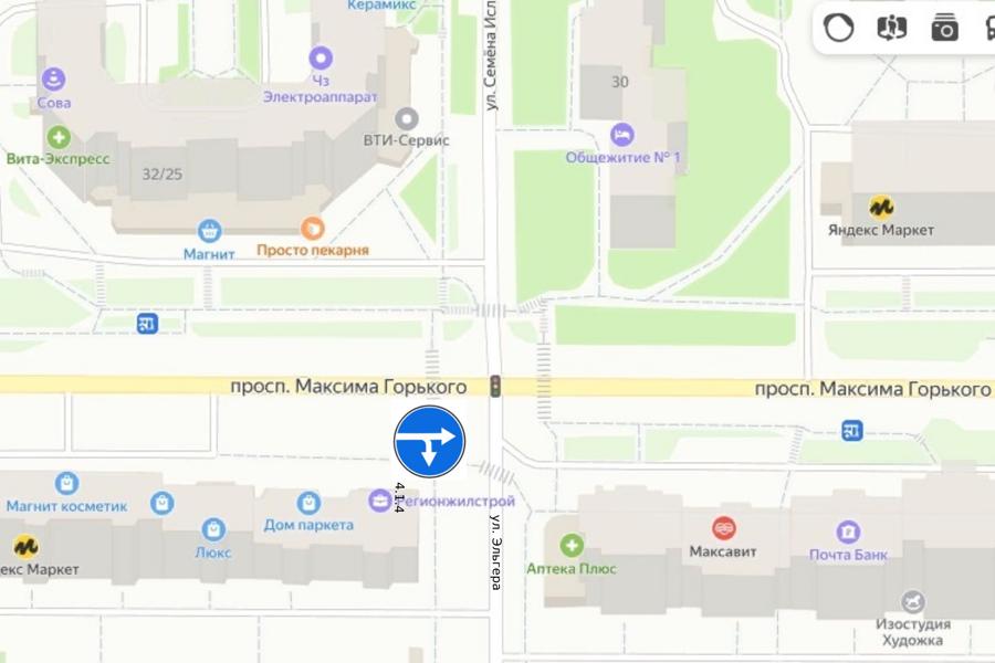 Также для устранения причин возникновения ДТП на перекрестке пр. М. Горького – ул. Эльгера будет запрещен левый поворот при движении в сторону улицы С.Ислюкова.