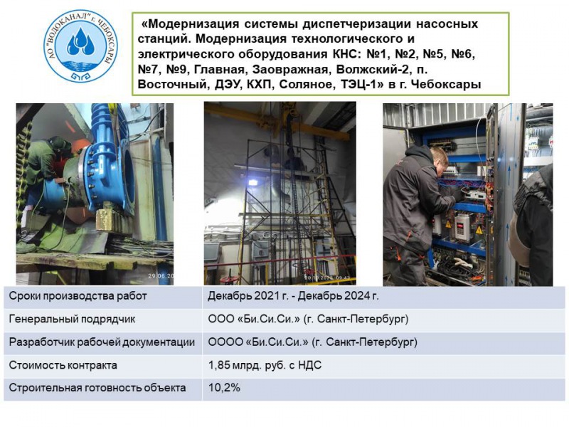 2) модернизацию технологического и электрического оборудования 14-ти канализационных насосных станций - 1,85 млрд рублей, степень готовности - 10,2%.