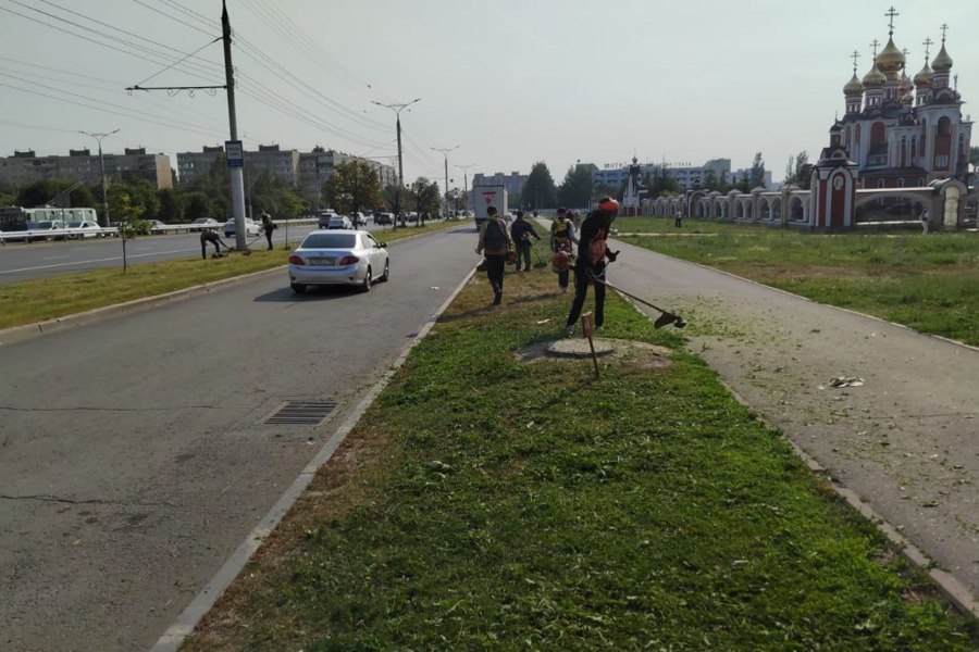Субподрядчик АО "Спецавтохозяйство" выводит рабочих на кошение травы по улицам Игнатьева, Гузовского (3 человека).