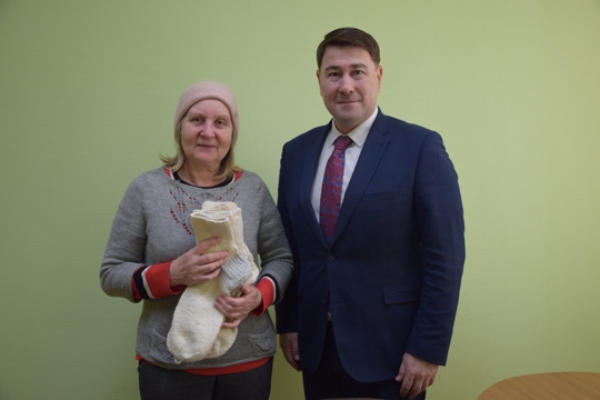 Жительница Московского района г. Чебоксары Татьяна Мелихова долгими зимними вечерами вязала шерстяные носки для участников специальной военной операции. Юбилейная пара, 30-ая по счету, выпала как раз на начало весны. Вместе с теплым презентом пенсионерка положила сладости и трогательные письма.