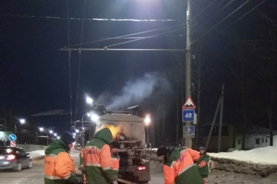 На городских дорогах ямочный ремонт ведётся круглосуточно.