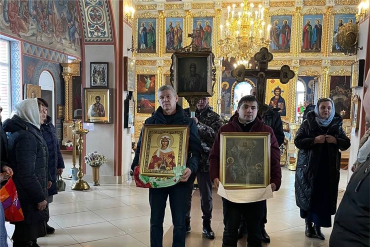 В богослужении участвовали благотворители и помощники в строительстве здания храма, один из которых на следующий день отправился нести службу в зону СВО.