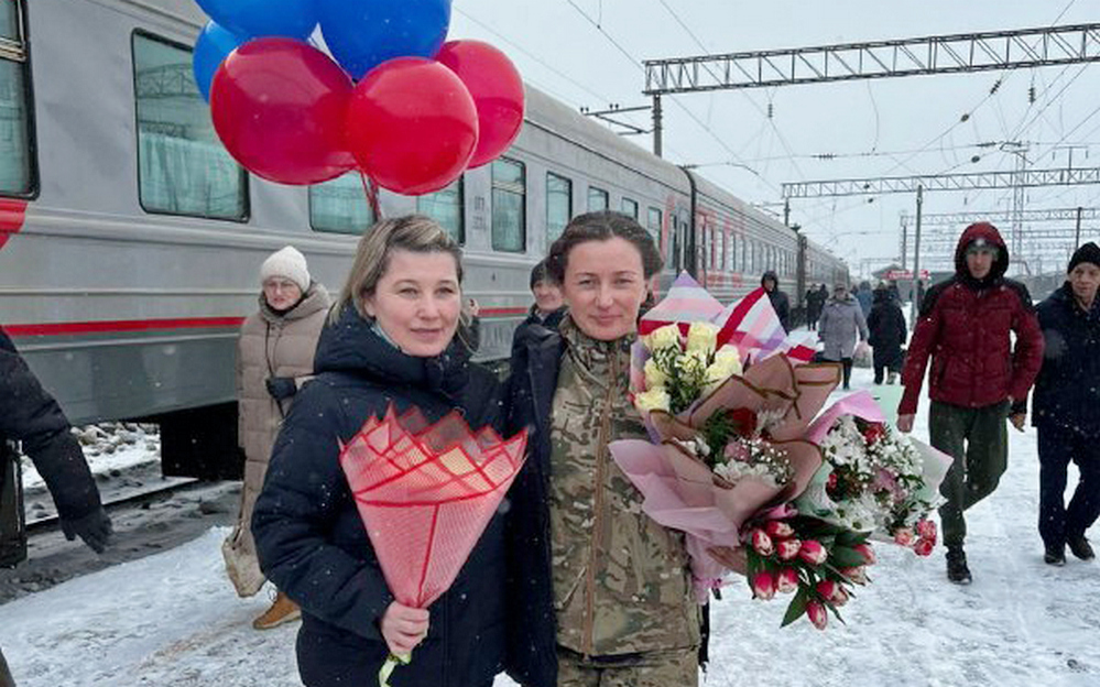 Коллеги и близкие люди встретили вернувшихся в Чебоксары медсестер букетами цветов.