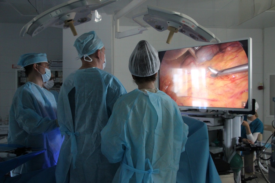 Обнаружение опухоли на ранней стадии, когда ее размеры не превысили 5-6 см, позволило хирургам выполнить оперативное лечение лапароскопическим способом, без разрезов. В этом случае введение инструментов, все манипуляции, в том числе иссечение и извлечение опухоли, проходит через небольшие проколы. Хирург контролирует свои действия по качественному цветному 4К изображению, передаваемому через видеокамеру, вводимую через аналогичный прокол. Эндоскопическая стойка, используемая во время подобных операций, получена в рамках национального проекта «Здравоохранение».