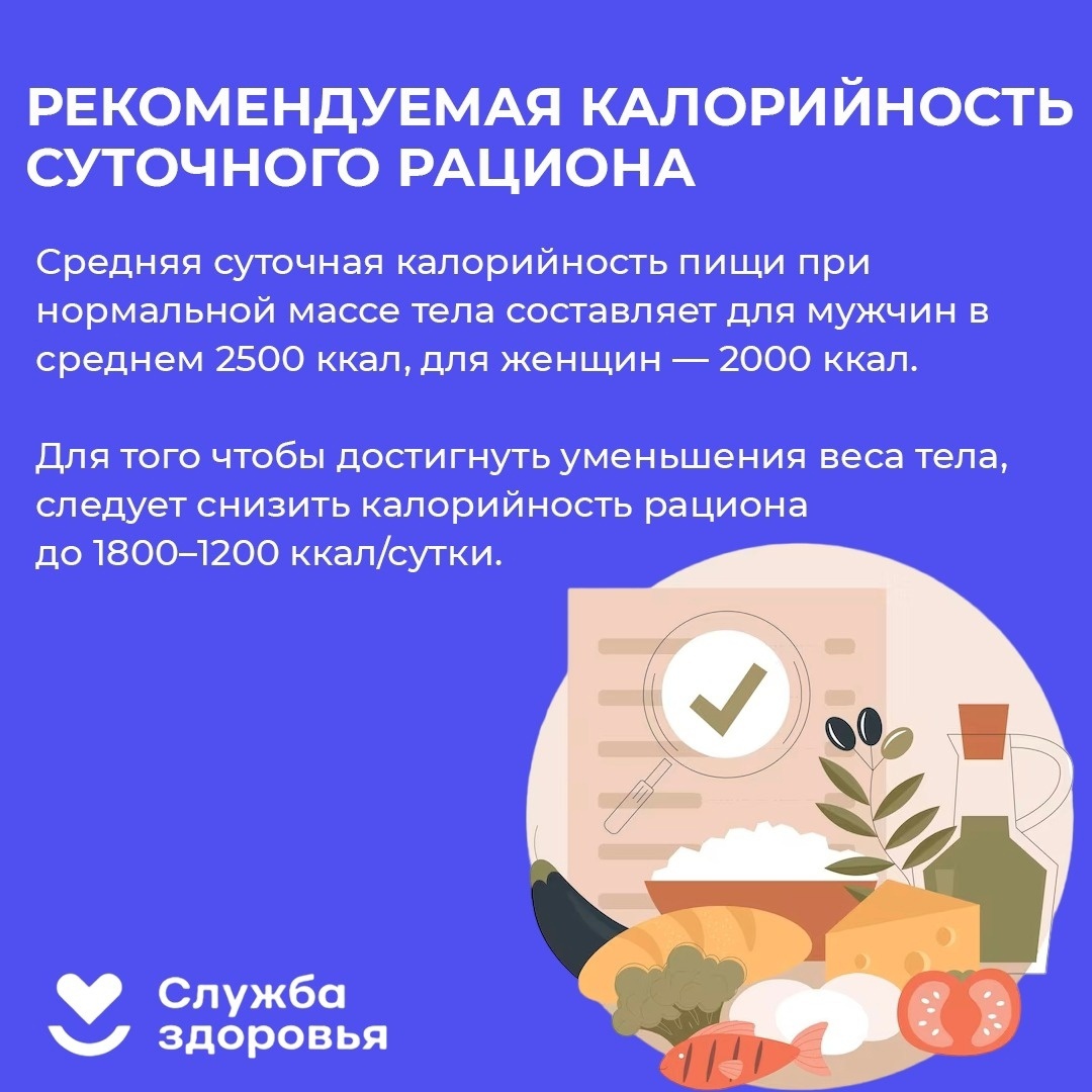 Одним из основных принципов построения рациона здорового питания является энергетическое равновесие (потребление калорий с пищей в соответствии с энергозатратами организма).