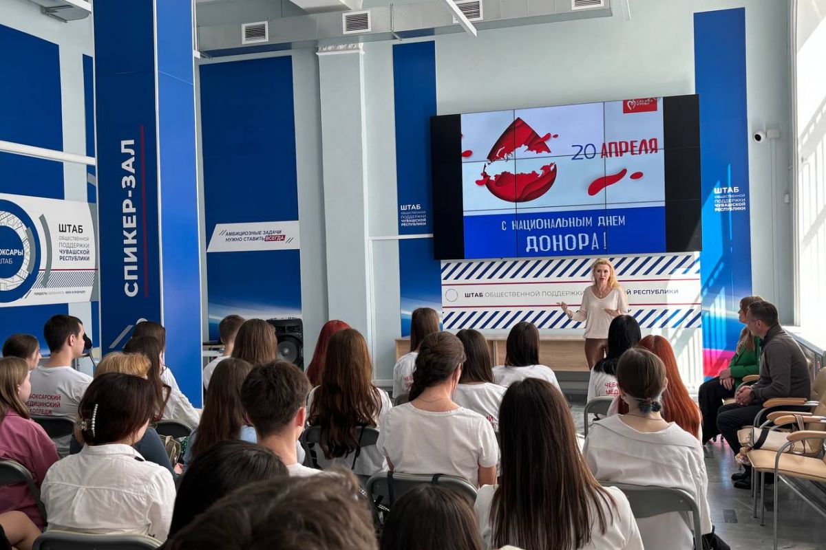 Медики Республиканской станции переливания крови 20 апреля, в День донора в России, провели в Штабе общественной поддержки Единой России в Чувашской Республике образовательное занятие на тему «Донорство крови и костного мозга».
