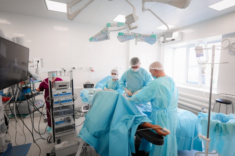 Один из пациентов по экстренным показаниям поступил в отделение хирургическое торакальное с жалобами на тяжесть в грудной клетке. Более подробно об этом клиническом случае рассказывает заведующий отделением хирургическим торакальным Алексей Добров. "Пациент поступил к нам из другой больницы после консультации по линии "санитарной авиации", у него была диагностирована внебольничная правосторонняя нижнедолевая деструктивная пневмония с эмпиемой плевры. Были сделаны лабораторно-диагностические исследования и затем проведено в плановом порядке оперативное лечение - торакотомия справа, декортикация лёгкого с нижней лобэктомией. Такой вид операции позволяет освободить лёгкое от спаек, фиброзных наложений, поражённая доля лёгкого удаляется. Пациенты с деструктивными пневмониями составляют около 40% от всей доли больных поступающих в стационар отделения. Это довольно распространённая проблема, которая решается либо открыто, либо закрыто, то есть миниинвазивно (торакоскопически). В этой ситуации спайки были очень плотные, поэтому вмешательство было проведено открыто, функция лёгкого была успешно сохранена", - подчёркивает Алексей Владимирович.