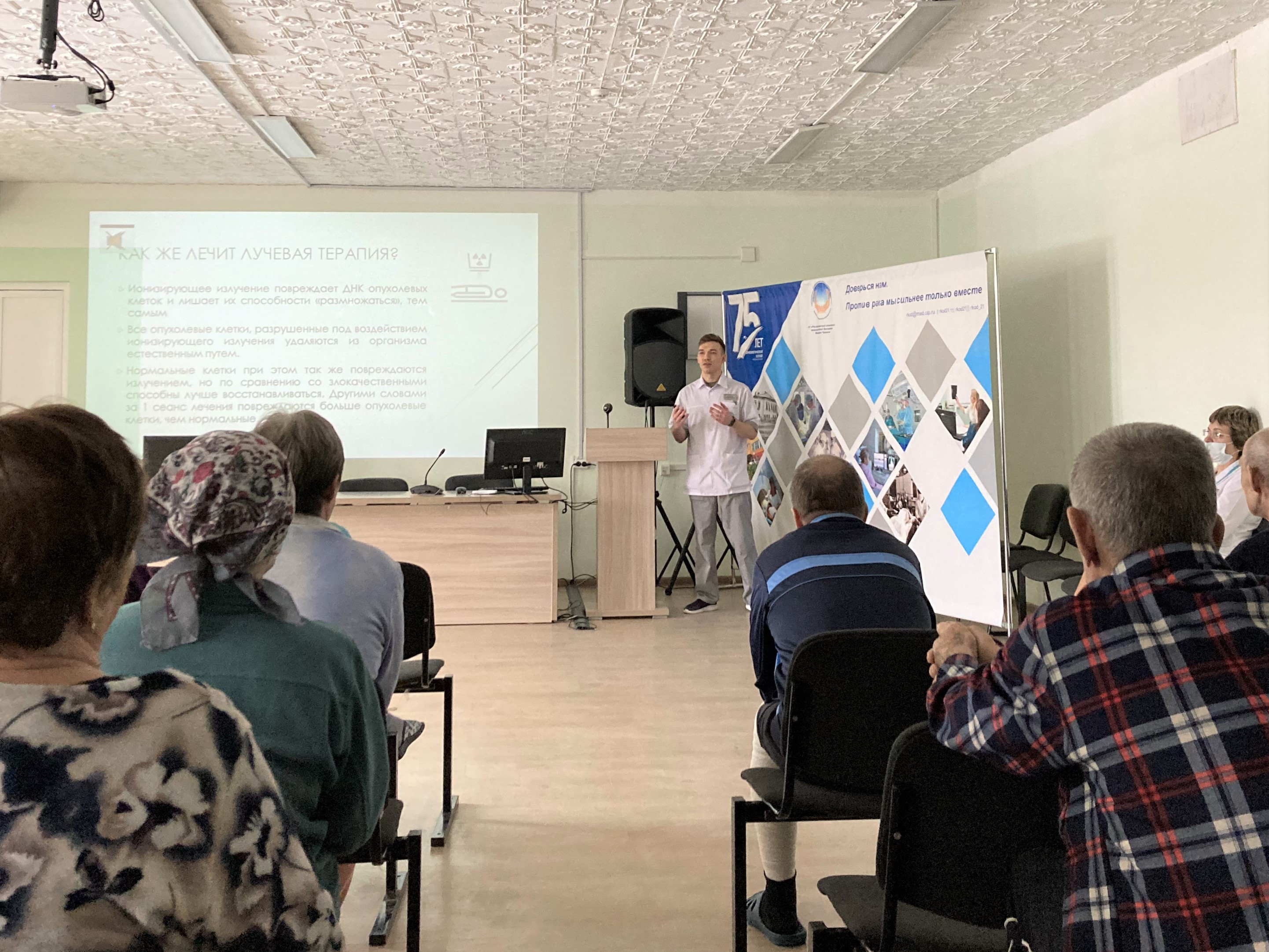 На встрече обсуждались как медицинские вопросы, так и психологическая поддержка онкопациентов. Так, врач-радиотерапевт Евгений Садовский рассказал о механизме действия лучевой терапии, ее видах, применяемом оборудовании, а также предупредил о возможных побочных эффектах и их профилактике. Врач-физиотерапевт Надежда Кузьмина отметила важность реабилитации пациентов с онкологическими заболеваниями, ознакомила с методами, используемыми в отделении медицинской реабилитации онкодиспансера. Психологические и социальные аспекты лечения обсудили со слушателями медицинский психолог Ольга Шумилина и специалист по социальной работе Алина Никитина .