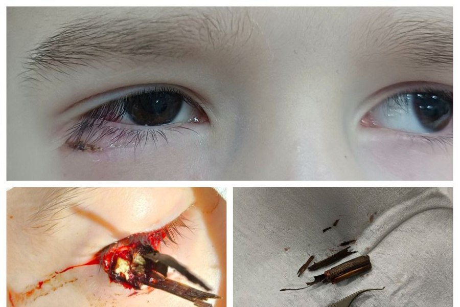 «Закончились длительные новогодние каникулы и, к сожалению, после праздников специалисты сталкиваются со сложными и тяжелыми травмами глаз у детей. Вот пример одной из них — мальчик 5 лет. Со слов мамы, он гулял на улице с братом. Споткнулся и упал на куст малины. В результате получил травму области нижнего века веткой. Ребенку потребовалось оперативное лечение. Уже в операционной, после ревизии раны, стало понятно, насколько повезло ребенку - глаз не пострадал. Деревянное инородное тело длинной 4 см было успешно удалено, полость промыта антибиотиками, а на рану наложены узловые швы с временной установкой дренажа.