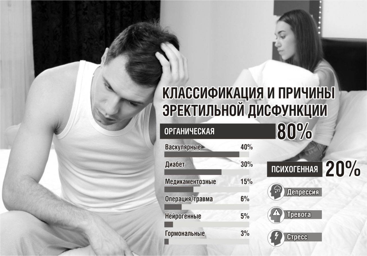 — То, что мужчины стараются утаить проблему, как раз и делает ее еще более актуальной. По статистике, это заболевание в России знакомо 25% мужчин от 30 до 70 лет. Более того, многие, кто мог бы своевременно вернуться к полноценной жизни, считают это естественным возрастным угасанием функции, с которым уже ничего не поделать.