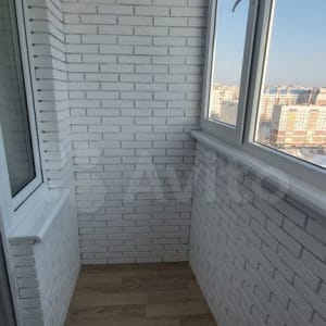 Балкон остеклен, стены отделаны декоративным кирпичом, окрашены.