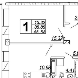- Общая площадь: 46.6 м²