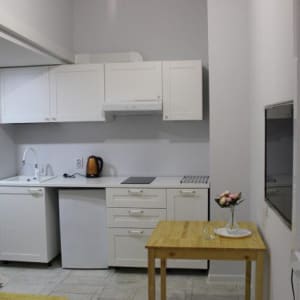 Новый светлый Евро-номер , потолки 3 м своя кухня, душ, туалет, все удобства со всем необходимым , полная уборка после каждого гостя и всегда свежее белье и полотенца .