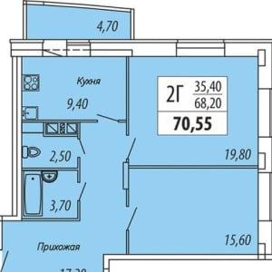 - Общая площадь: 70.6 м²