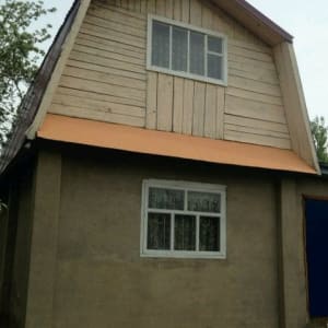 - двух- этажный дoм ( 1 этаж киpпич оштукатуpенный, 2 -ой дeрево+ профлист)