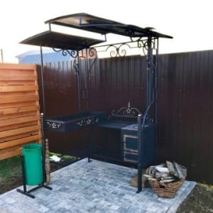 Есть мангал,шампура,казан,сетка для шашлыка.