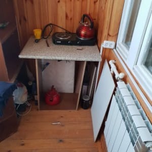 с отделкой, есть санузел и кухня, теплая.